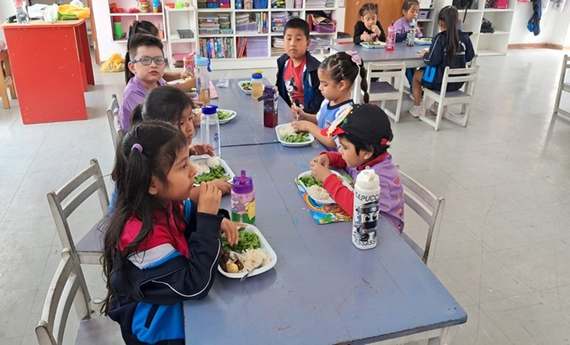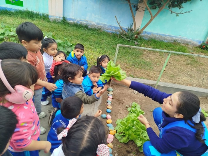 Mi Pequeño Mundo y las Estrellitas, se comprometió con desarrollar las acciones orientadas a prevenir y reducir la prevalencia de sobrepeso y obesidad que llega a cerca del 30% de su población escolar. Implementar el uso del plato saludable durante la lonchera, realizar ejercicio físico planificado y dirigido por las maestras diariamente, como complemento a las actividades físicas cotidianas que se desarrollan como parte de su plan educativo; la implementación de biohuertos para cultivar verduras y el consumo de ensaladas frescas de manera permanente dentro de las instalaciones de la IEI, son las acciones que se desarrollan desde el inicio de su participación. Nos indica la profesora Ruth Farro que el acompañamiento de la UPCH ha fortalecido la implementación y sostenibilidad del proyecto, permitiendo la buena nutrición y salud lleguen a los padres y estudiantes.