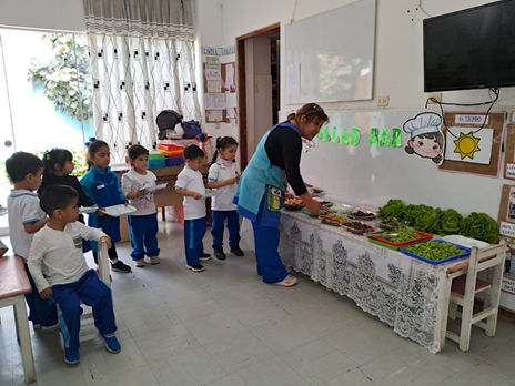 Finalmente, nos indica que los resultados de la puesta en práctica del proyecto “Cayetano en tu Inicial” en su IEI ha permitido resultados positivos en prácticas alimentarias de los niños, la realización de los Salad Bar ha permitido que los niños empiecen a traer estos alimentos (verduras) en sus loncheras, así como el uso del plato en el momento del consumo del alimento, son 2 aspectos para resaltar en su IEI.