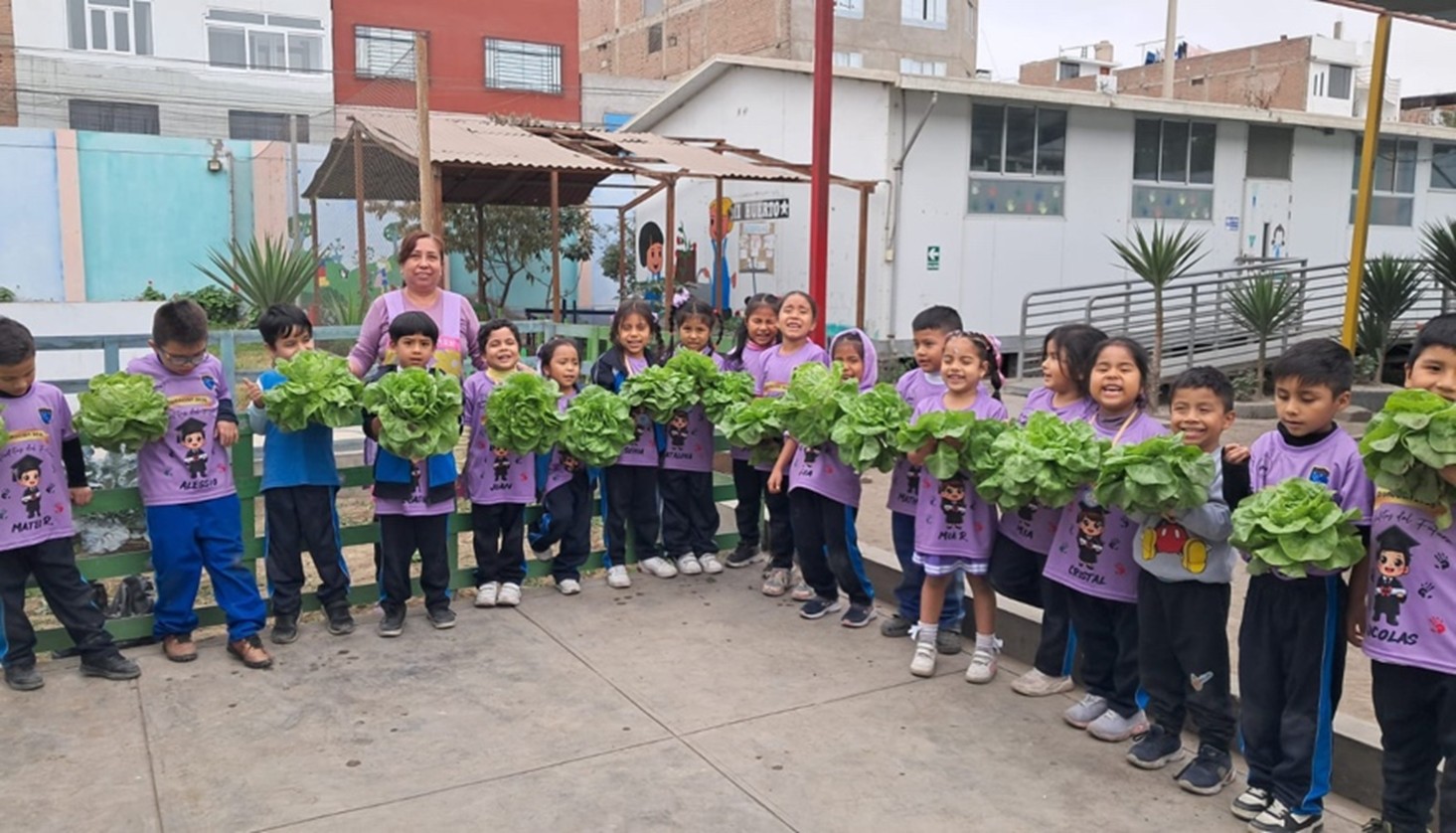 Mi Pequeño Mundo y las Estrellitas, se comprometió con desarrollar las acciones orientadas a prevenir y reducir la prevalencia de sobrepeso y obesidad que llega a cerca del 30% de su población escolar. Implementar el uso del plato saludable durante la lonchera, realizar ejercicio físico planificado y dirigido por las maestras diariamente, como complemento a las actividades físicas cotidianas que se desarrollan como parte de su plan educativo; la implementación de biohuertos para cultivar verduras y el consumo de ensaladas frescas de manera permanente dentro de las instalaciones de la IEI, son las acciones que se desarrollan desde el inicio de su participación. Nos indica la profesora Ruth Farro que el acompañamiento de la UPCH ha fortalecido la implementación y sostenibilidad del proyecto, permitiendo la buena nutrición y salud lleguen a los padres y estudiantes.